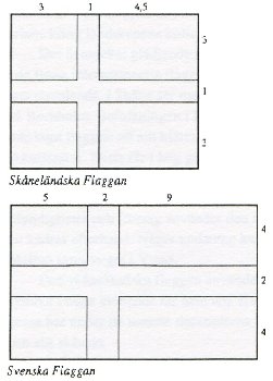 I alla diskussioner om flaggor pratar man nästan uteslutande om färgerna och formerna på duken. Det är ytterst sällan flaggans proportioner nämns. Som scout fick man lära sig att den svenska flaggan har måtten: 4-2-4 (10) på höjden och 5-2-9 (16) på längden. Detta ger en ganska långsmal flagga.