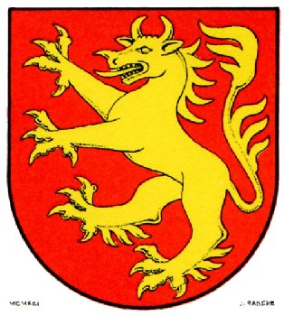 SKÖLD: I rött fält en heraldisk, skånsk, panter av guld.