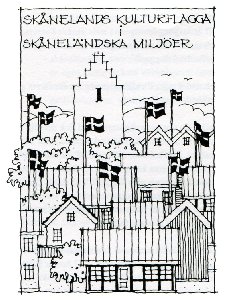 Således kan envar nu hissa den nya kulturhistoriska symbolen för Skåneland. Flaggan har rötter som sträcker sig långt tillbaka i Danmarks historia och som antagligen också sträcker sig långt tillbaka till Danmarks och Nordens gemensamma katolska ärkebiskopssäte i Lund strax efter vikingatiden. Denna nya kultursymbol är politiskt helt obefläckad och kan användas i alla kulturella, turistmässiga, representativa och personliga sammanhang.
