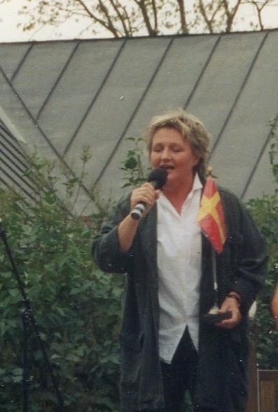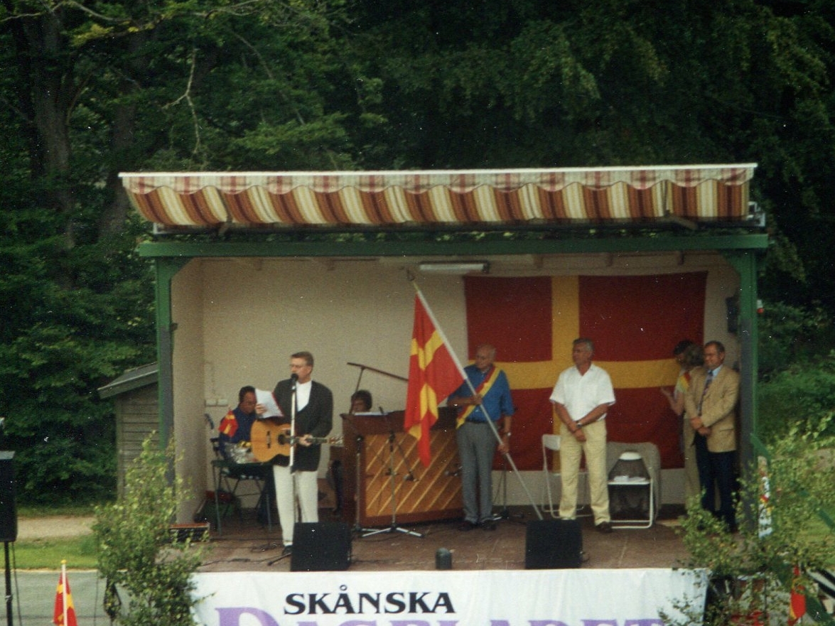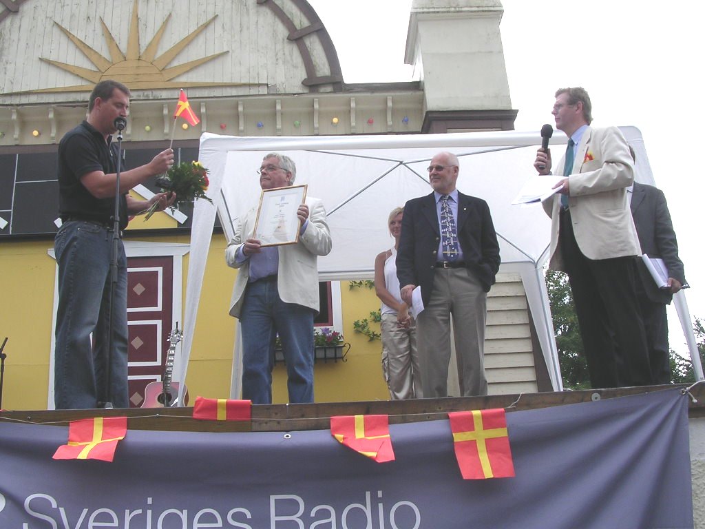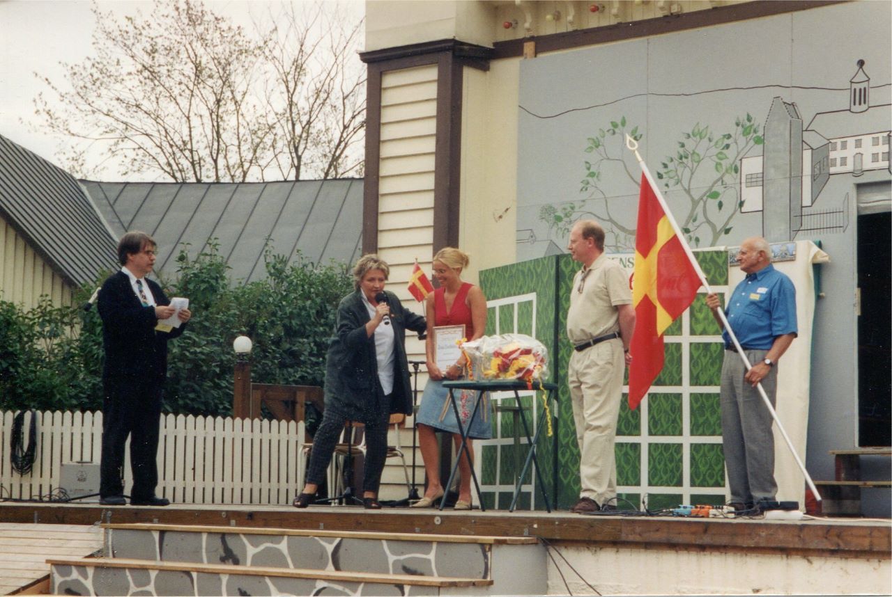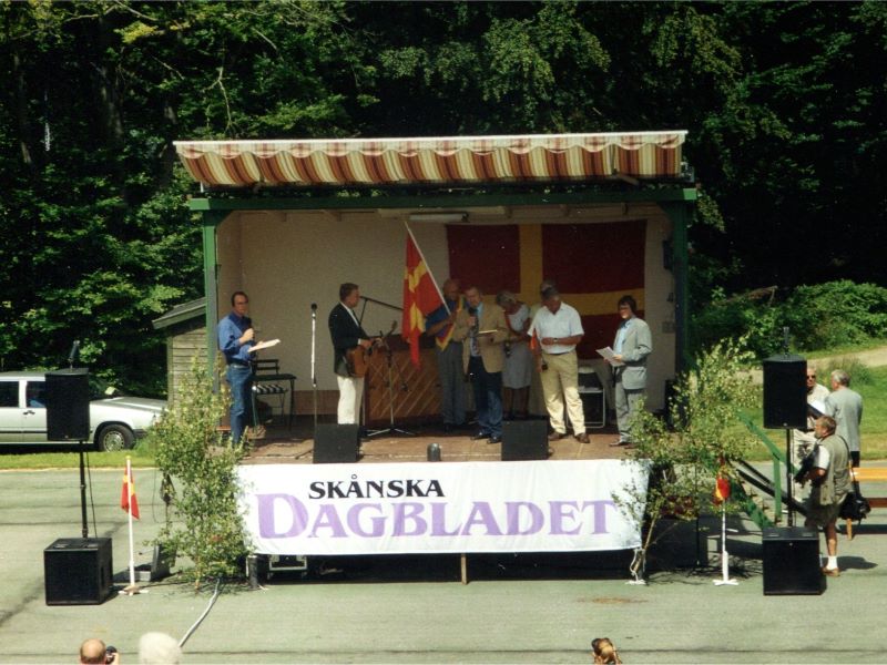 Michael Wiehe korades på scenen i Frostavallens amfiteater. Dåvarande Skånestyrelsens ordförande höll ett tal till den Årets skåning 2000.