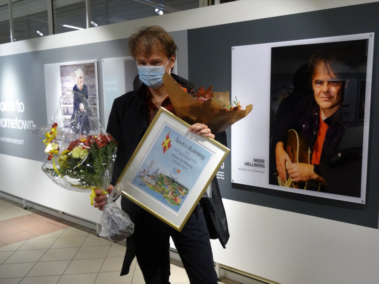 Vid en ceremoni i Sturups ankomsthall den 21 oktober korades musikern Nisse Hellberg som Årets skåning 2020. Samtidigt avtäcktes hans porträtt i ankomsthallen där det skall hänga ett helt år tillsammans med Skånes övriga storheter.