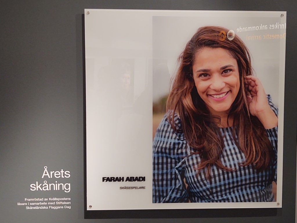 Det är tradition att Årets skåning får sitt porträtt upphängt i ankomsthallen på Sturup. Där skall det hänga i ett år. Vid en ceremoni idag den 26 september var det programledaren Farah Abadis tur. Hon fick avgjort flest röster när allmänheten sagt sitt och blev korad i Kivik i somras.